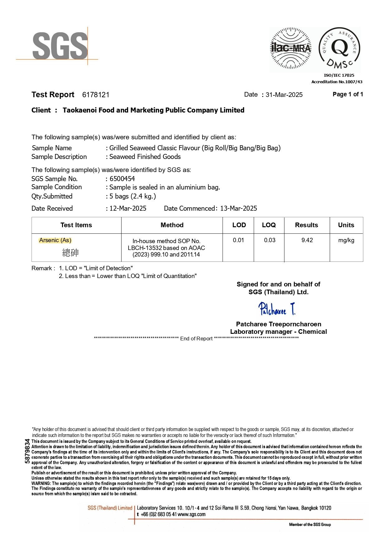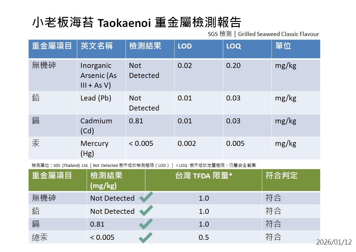 小老闆海苔 "自主性重金屬檢測"